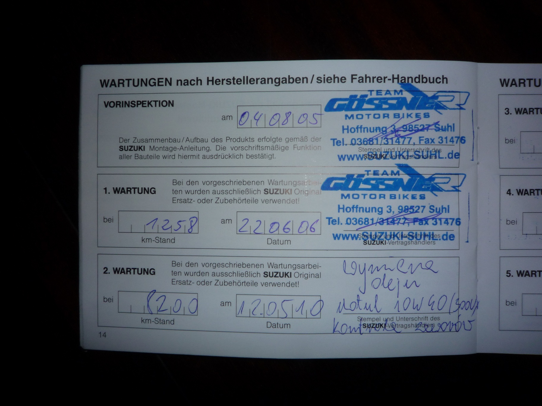 Po kupnie pierwsze co to wymiana oleju(motul 10W40 300V) i filtra oleju, oraz czyszczenie filtra powietrza oraz sprawdzenie zaworów i napinacza łańcuszka rozrządu oraz smarowanie łańcucha(smarowany regularnie). Obecnie posiada przebieg 10800km i jest w stanie idealnym poza kilkoma ryskami i tłumikiem. Tłumik w celach swojego bezpieczeństwa został przerobiony na głośniejszy. Przy przebiegu około 10000 założony nowy komplet opon. Do moto posiadam: