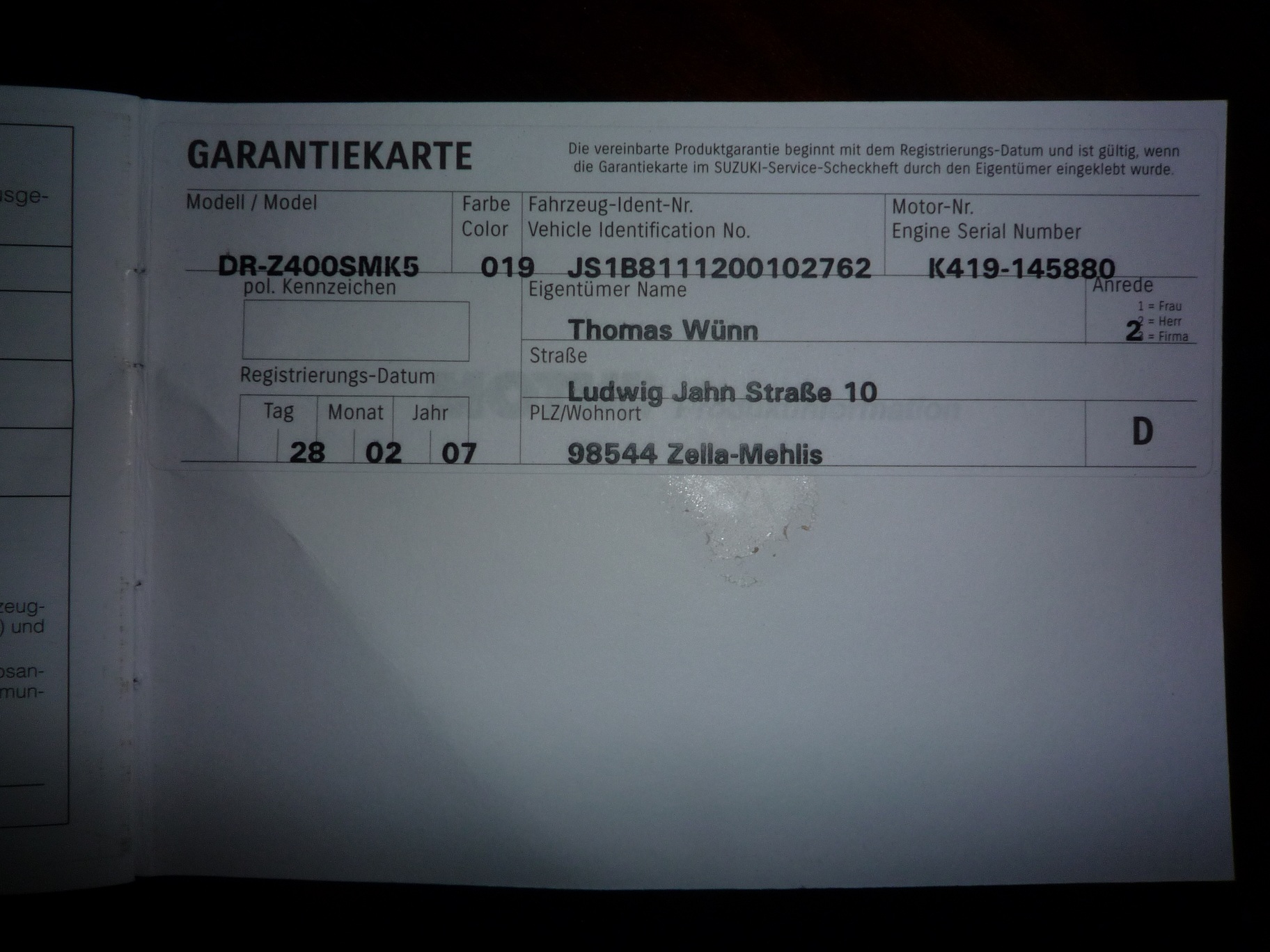 Witam, jak w tytule drz'ta do sprzedania, nabyłem ją na początku sezonu, na początku maja z przebiegiem 8200km. Kupiony od pierwszego właściciela w Polsce, który twierdził że wziął go tylko na handel z niemiec. W/g książeczki serwisowej, pierwsza rejestracja była 28.02.2007r. w książeczce serwisowej są dwa wpisy z wizyt w autoryzowanym serwisie: