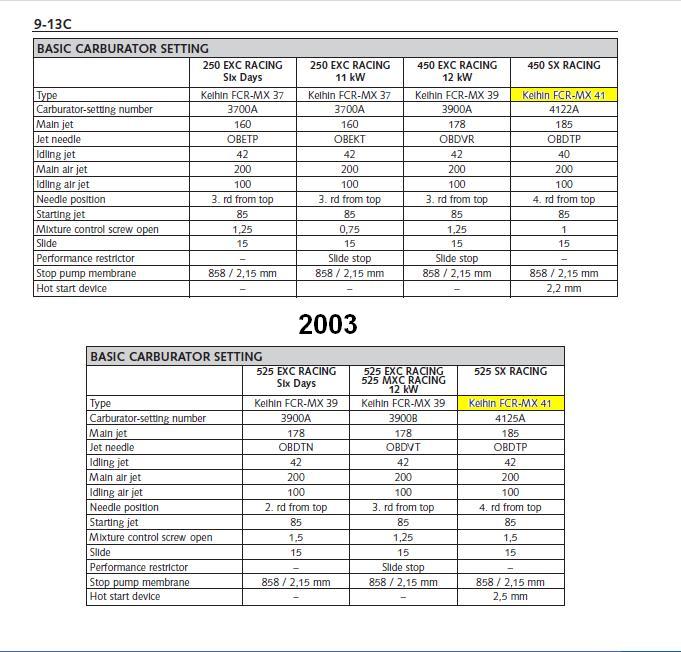 Ustawienia KTMow z 2003 roku